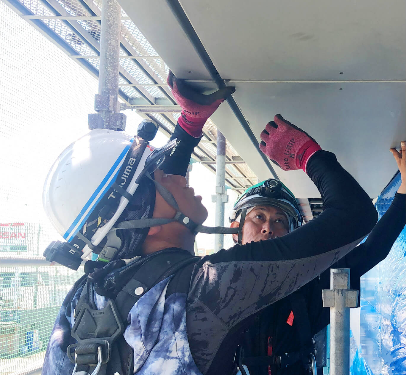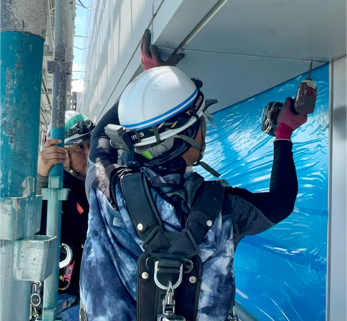 溶接の技術によって金物を加工し、手すりや外壁パネル、装飾物の取り付けなどを行います。現場はビルや店舗など様々。地域のランドマークに関わる事もあり、非常に手応えの大きな仕事です!